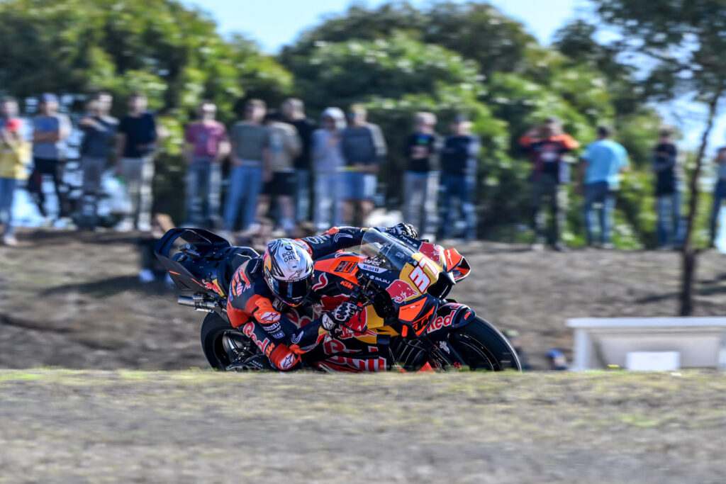 El italiano Marco Bezzecchi (Aprilia) dominó la carrera en Portimão desde la pole hasta la bandera a cuadros, logrando una victoria sólida y bien gestionada ante sus rivales. El español Álex Márquez (Ducati) terminó segundo, defendiendo su posición en las últimas vueltas, y Pedro Acosta (KTM) fue tercero, completando el podio de la categoría reina.